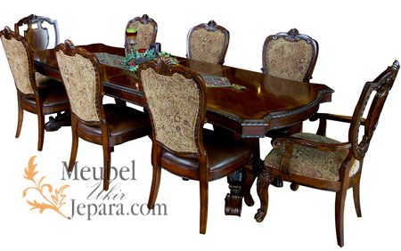 MU-MM47 Meja Makan Mewah Jati Klasik 8 Kursi