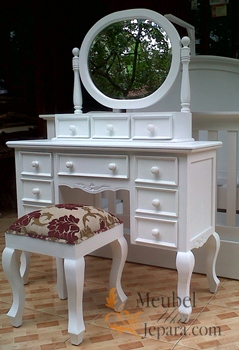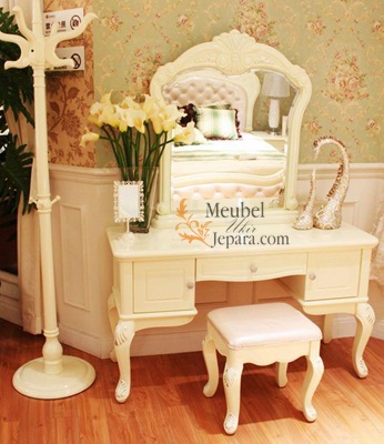 Salah satu perabotan yang harus tersedia dalam ruang pribadi adalah meja rias antik. Penempatan meja rias yang tepat mampu mendongkrak sisi cantik kamar pribadi Anda. Sebelum membeli perabot tersebut, akan lebih baik jika Anda mengukur daerah yang akan diduduki furnitur meja rias. Hal ini penting untuk menghindari pembelian meja rias yang melebihi alokasi lahan yang tersedia dalam kamar.
