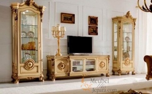Buffet tv jati gold mempunyai tampilan yang megah karena merupakan desain khas dari mebel jepara. Produk kami ini adalah pilihan yang sempurna untuk sebuah ruang di rumah Anda. Buffet tv jati gold terbuat dari bahan jati yang banyak diminati konsumen karena memiliki banyak keuntungan, selain tahan lama lemari hias ini mempunyai tampilan yang menawan yang mampu memberikan desain interior menarik, bagi Anda yang ingin memiliki buffet tv jati gold, silahkan hubungi kami untuk informasi harga dan pesanan.