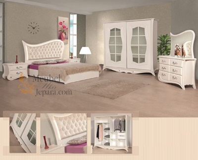 Kamar set pengantin murah yang diproduksi mebel jepara ini lebih menonjolkan konsep minimalis. Dengan finishing cat duco putih akan memberikan tampilan modern dan menawan untuk kamar tidur anda.