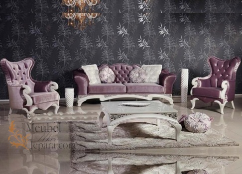 Produk Sofa untuk kursi tamu mewah yang dibuat menggunakan bahan baku mahogany perhutani. Oleh pengrajin mebel jepara, dalam memproduksi set kursi sofa ini dilakukan dengan sangat dikontrol. Mulai dari pemilihan kayu, pembuatan konstruksi, ukiran, proses finishing hingga pemilihan jok.