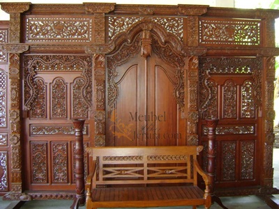 Pintu gebyok merupakan salah satu furniture kha syang berasal dari jawa. Biasanya pintu gebyok ini di gunakan sebagai pintu utama dalam rumah adat jawa yang terinspirasi dari kerajaan – kerajaan yang ada di jawa pada zaman dulu. Tetapi sampai saat ini pintu gebyok jawa ini popularitasnya masih sangat tinggi bahkan penggunaannya tidak hanya di gunakan dalam rumah adat jawa. Sudah banyak orang yang menggunakan pintu gebyok jawa untuk rumah – rumah mewah dan modern karena saat ini terlah hadir pintu gebyok jawa dengan desain yang kian modern dan semakin populer di kalangan masyarakat indonesia. Nah bagi anda yang juga tertarik dengan pintu gebyok jawa tersebut, anda bisa melihat pintu gebyok jawa ukiran jepara buatan kami yang satu ini. Kami membuat pintu gebyok jawa ukiran jepara tersebut dengan model pintu gebyok jawa pada umumnya, hanya saja kami memilih menggunakan desain ukiran khas kota jepara sebagai desain utama pembuatan pintu gebyok jawa ukiran jepara ini sehingga desainnya terlihat semakin indah.